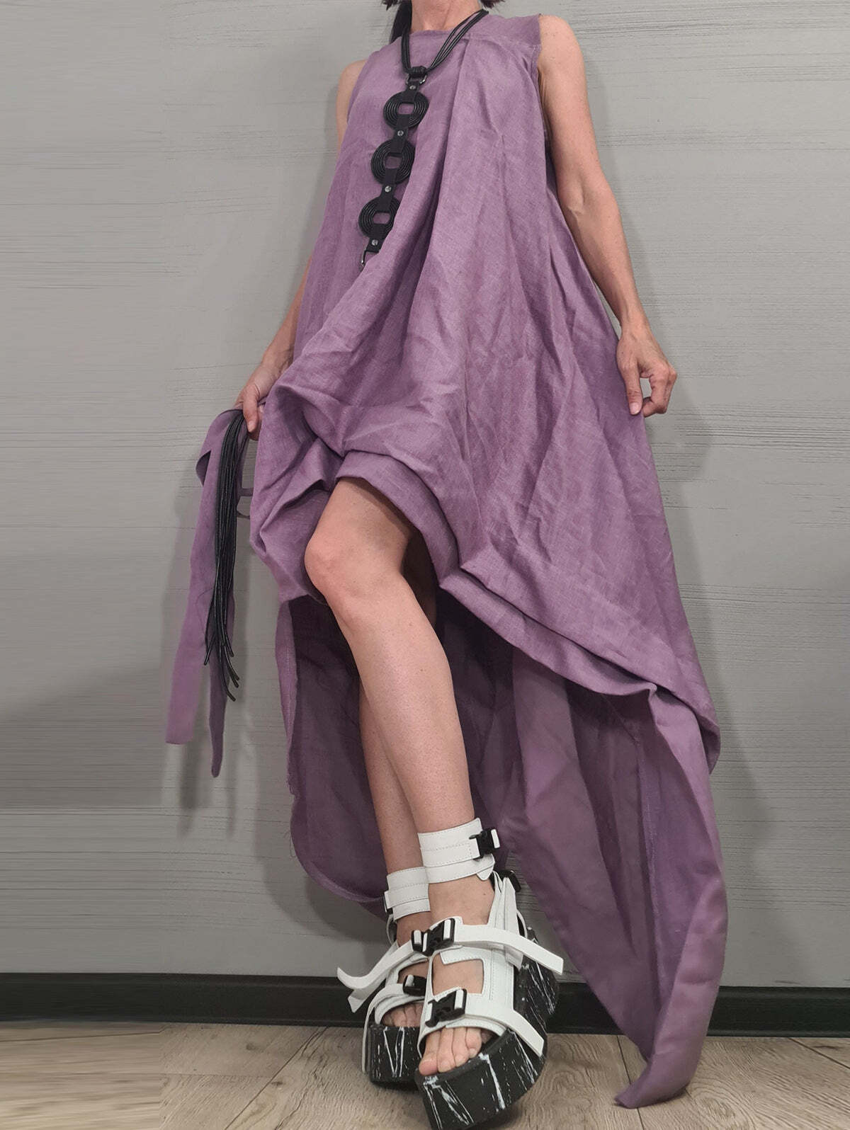 Casual Plain Sleeveless Loose Asymmetrical Midi Tank Dress