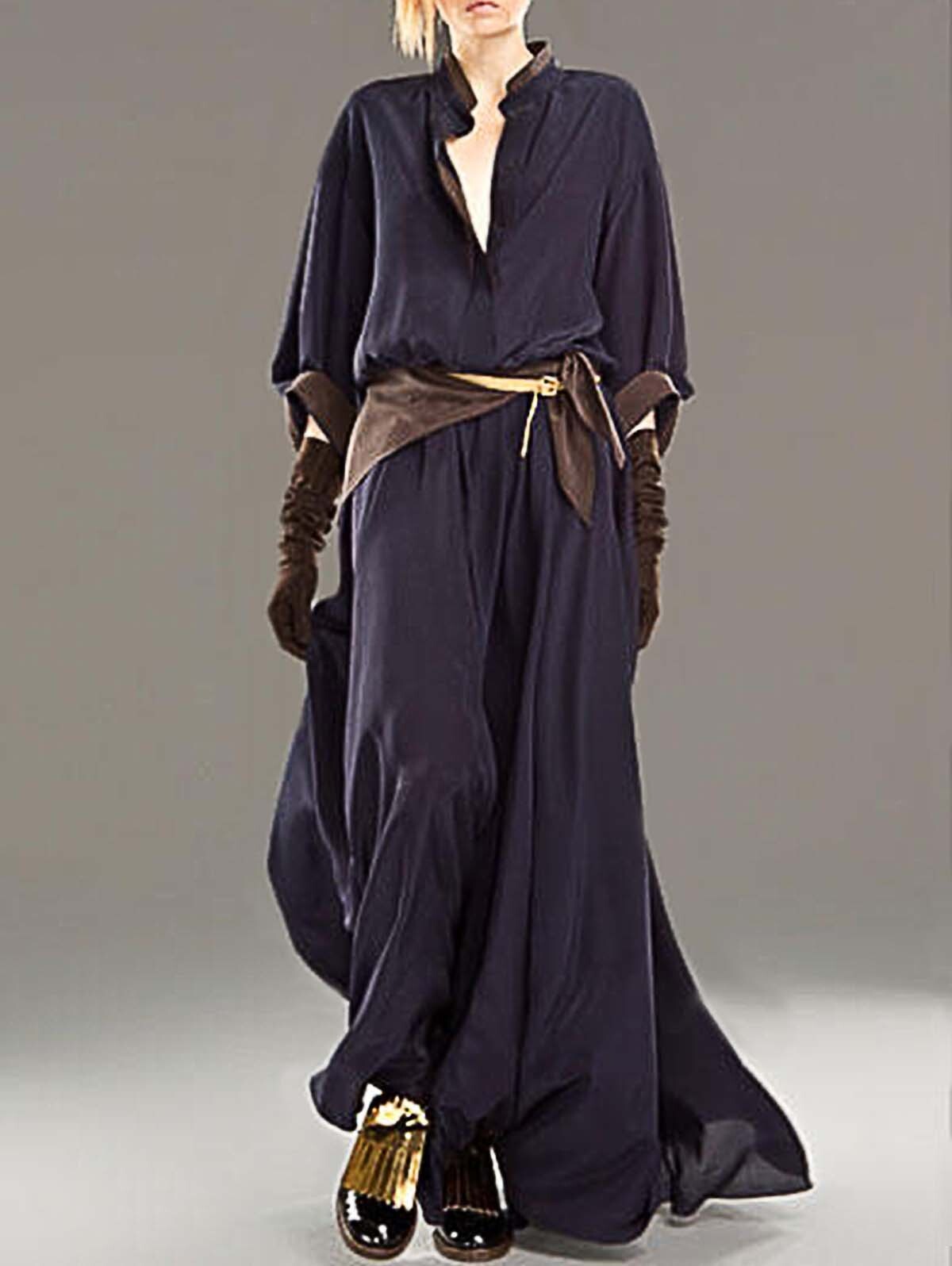 Elegant Plain Stand Collar Loose Slit Maxi Tank Dress