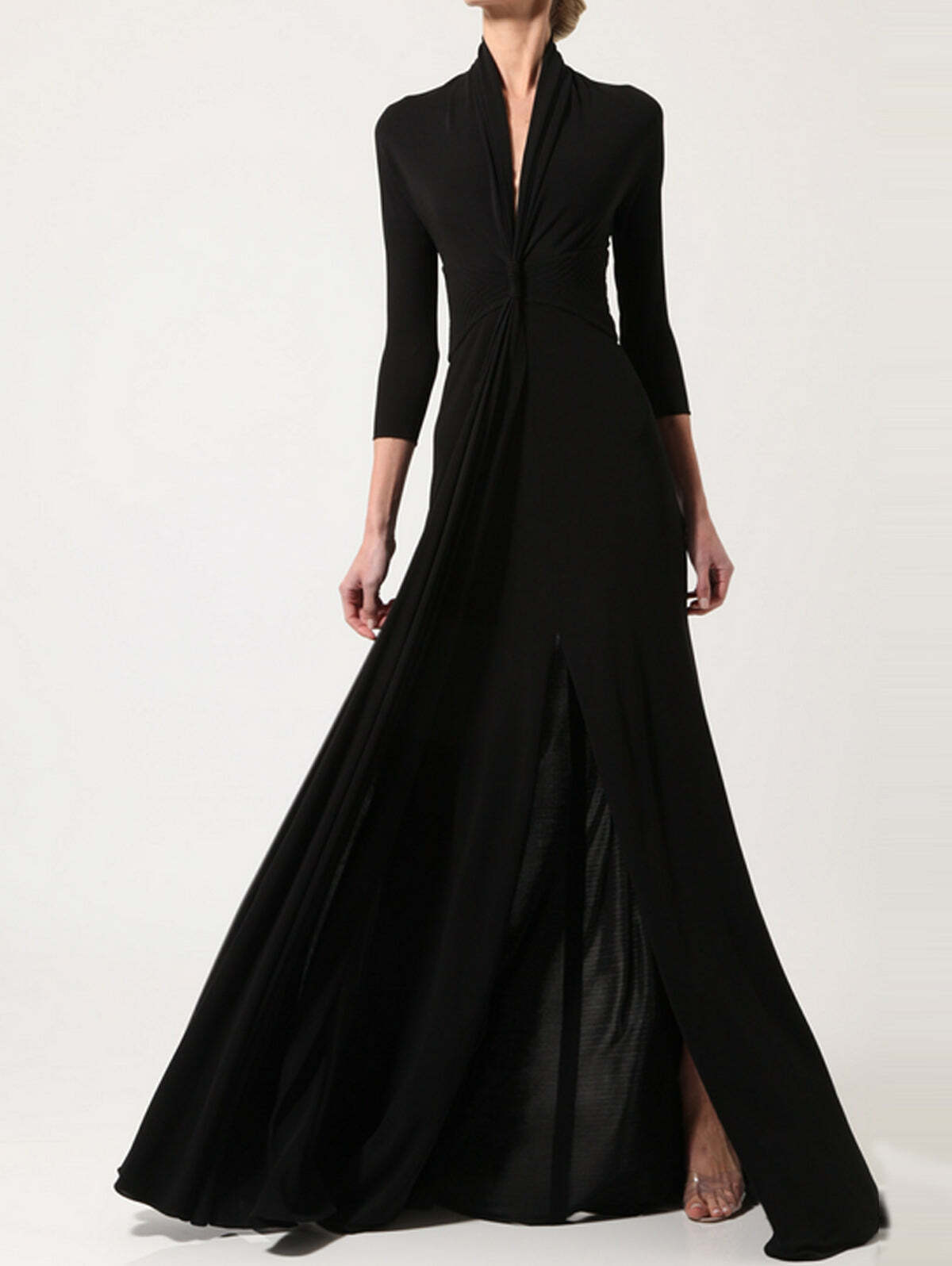 Elegant V Neck 3/4 Sleeve Floor-length Flowy Dress