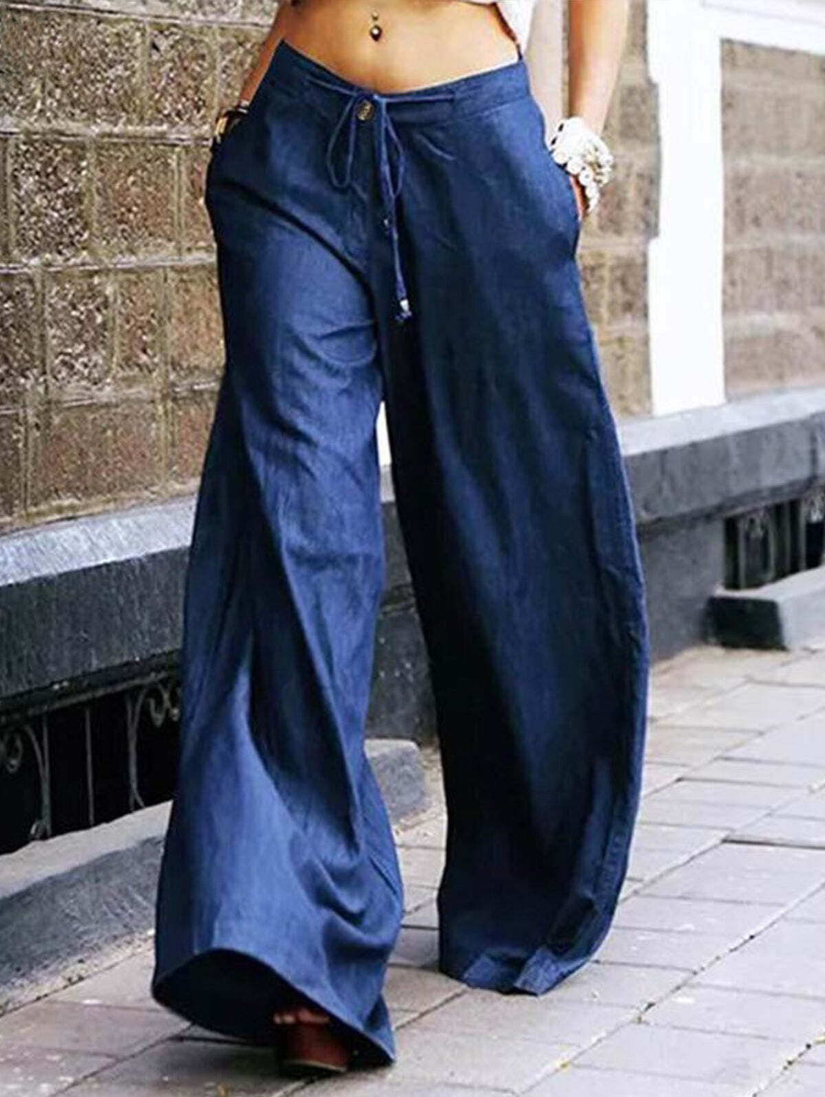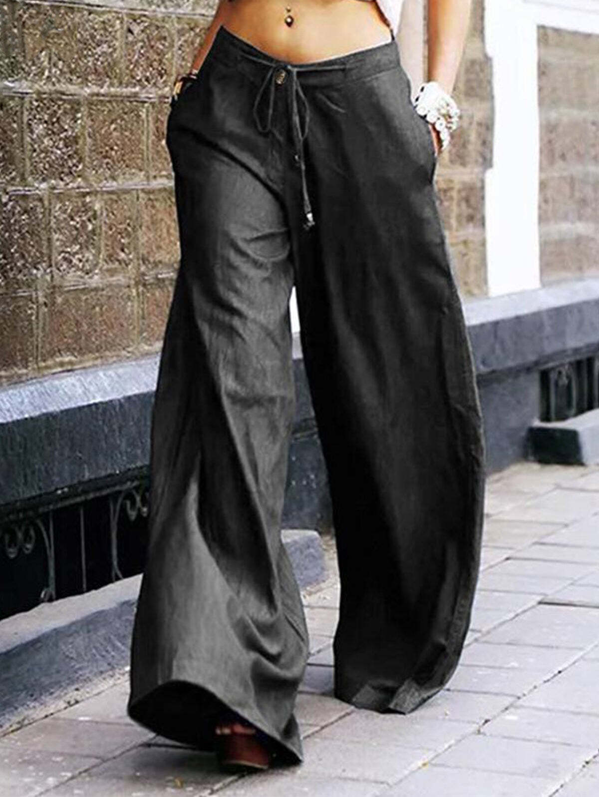 Elegant High Waist Lace-up Wide Leg Pants