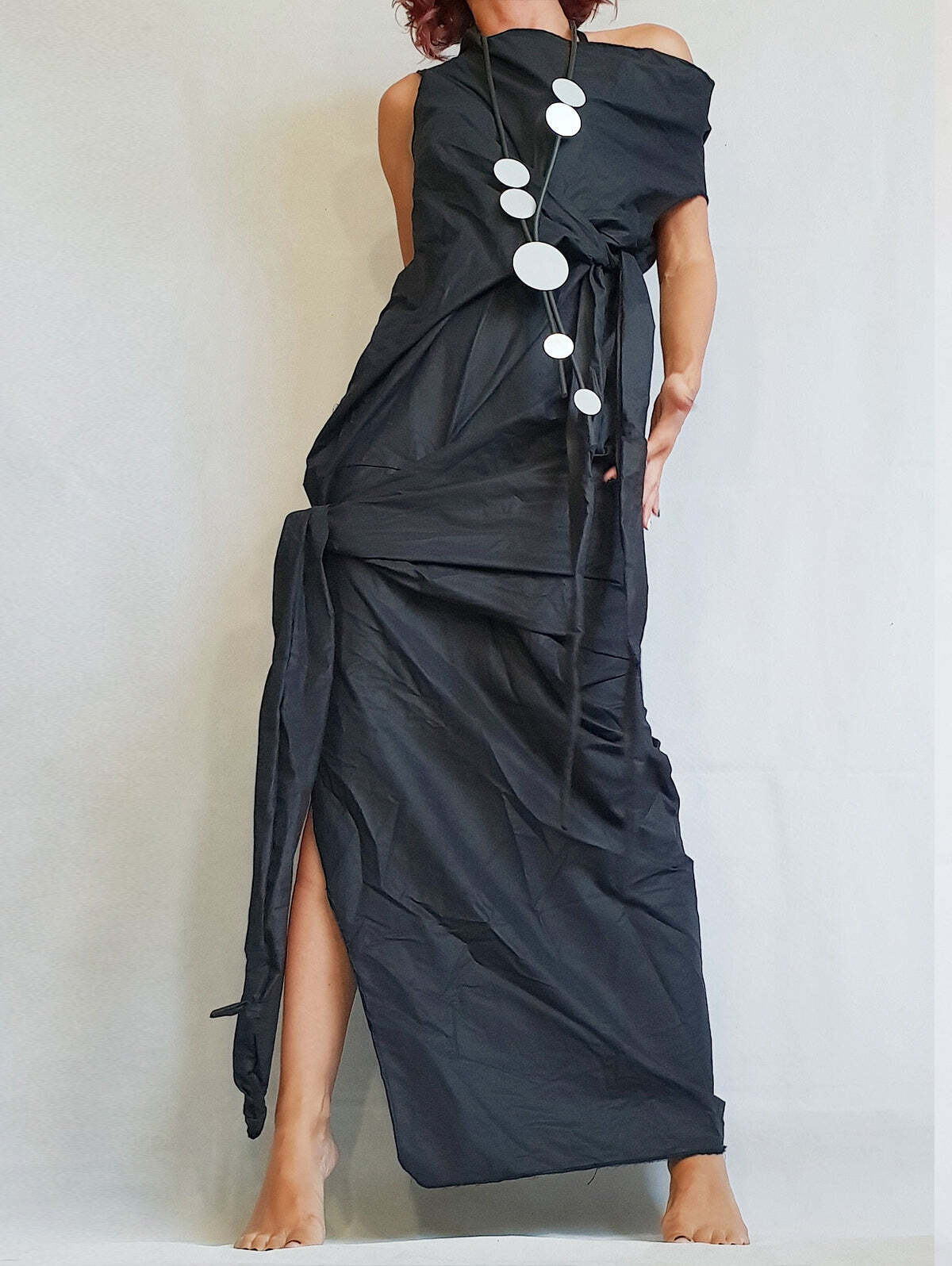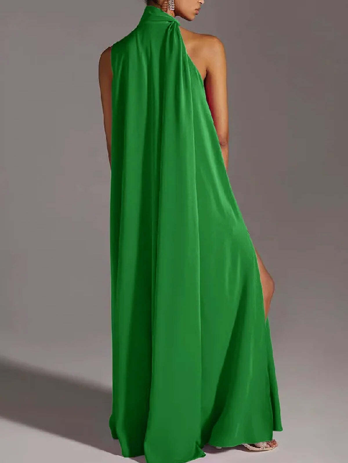 Casual Plain One Shoulder Split Asymmetrical Maxi Dress