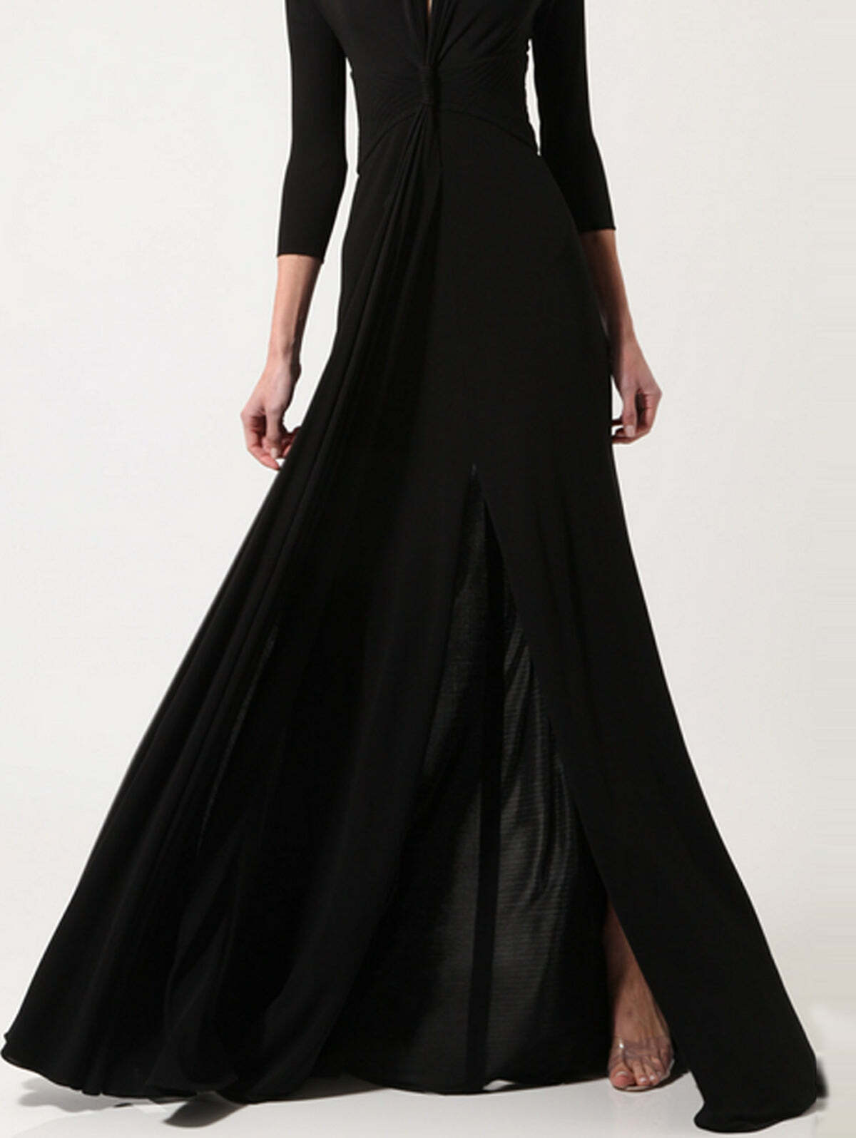 Elegant V Neck 3/4 Sleeve Floor-length Flowy Dress